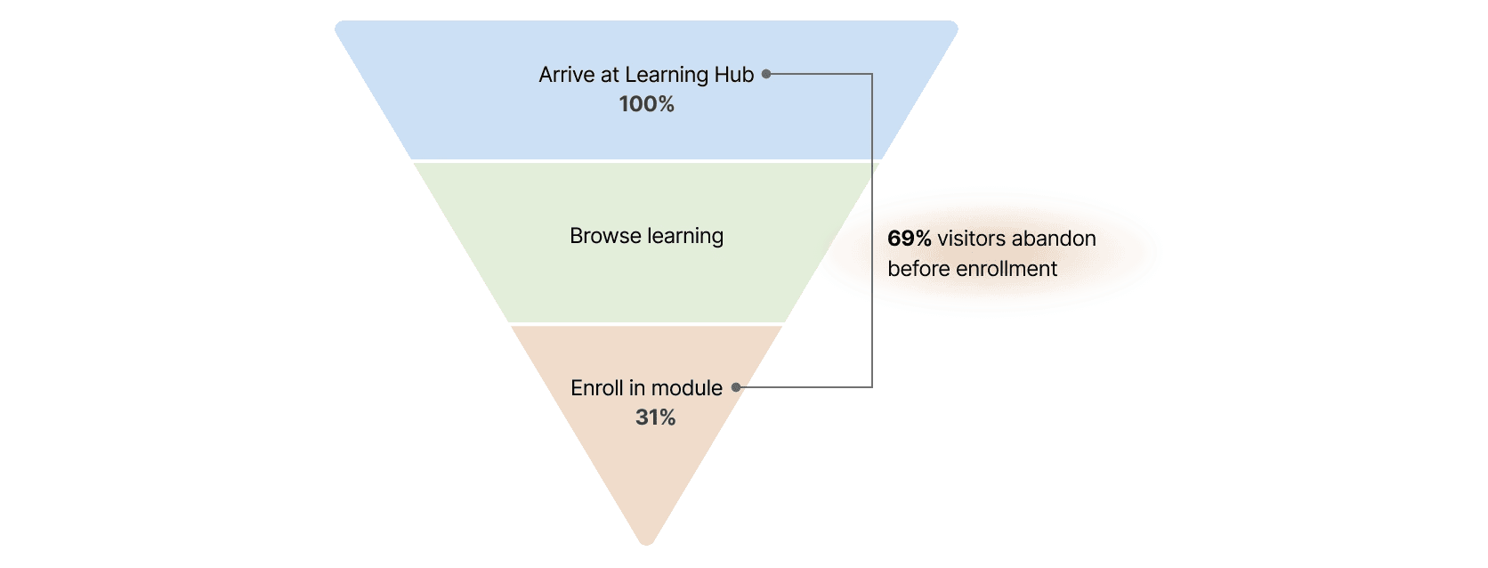 The project got approved, then leadership changed. I needed to rebuild the business case, so I ran funnel analysis that revealed 69% of visitors abandon before enrollment.